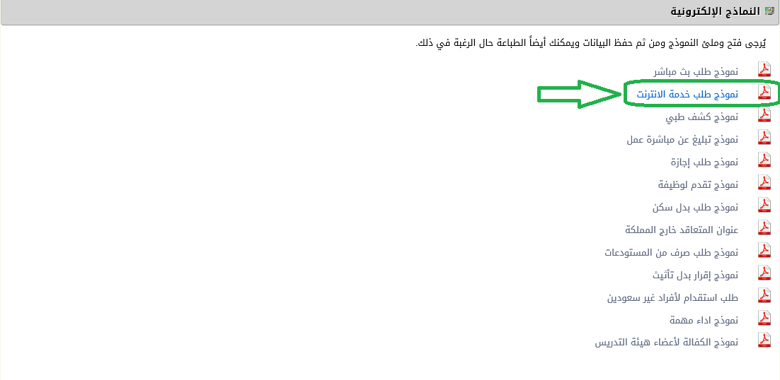 ومن النماذج في الشكل (3) اختر "نموذج طلب خدمة انترنت"